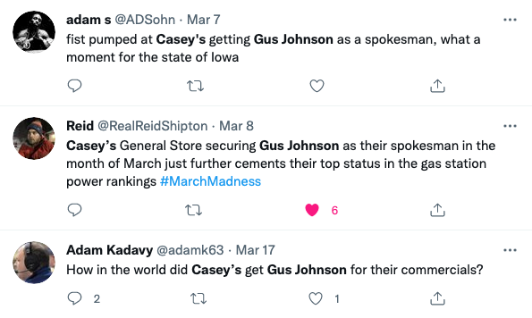 Solution: Partner with legendary sportscaster, Gus Johnson, to cheer on Casey’s as a meal solution — from the app to curbside pickup to new meal offerings.