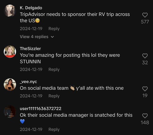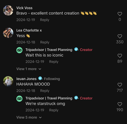 Tripadvisor posted a carousel recap of their journey, tagging the group. The entire Welsh 5 commented and reposted within an hour, making the post go viral. Their fans rabidly demanded a partnership.